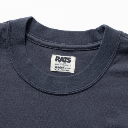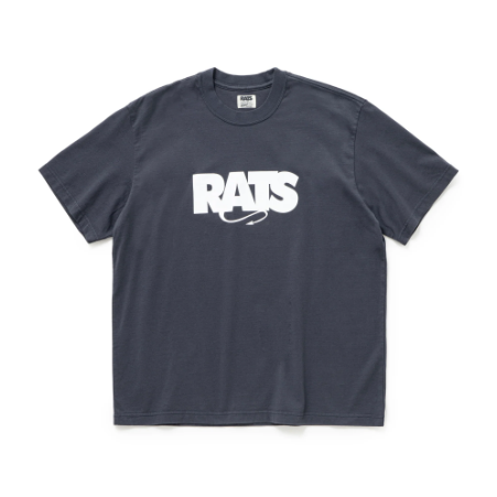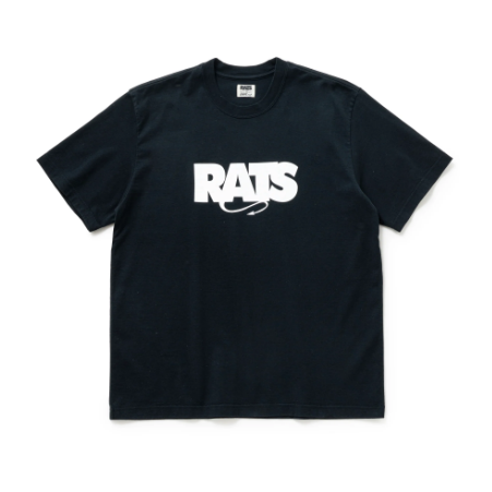 フロントにボックス型RATSロゴをラバープリント。背面右腰にRATモチーフのワンポイント刺繍。ロックネック仕様、レギュラーフィットシルエット。製品にてワンウォッシュ済み。