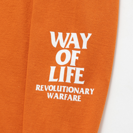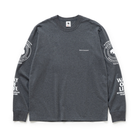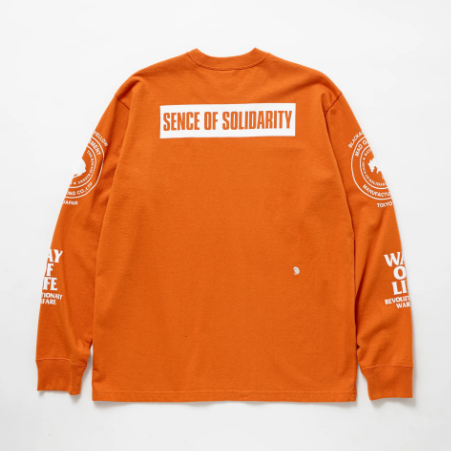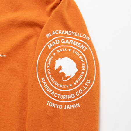 スリーブにRatモチーフのサークル柄ロゴ、WAY OF LIFE、背面ヨークにSENCE OF SOLIDARITY型ボックスロゴをラバープリントで配置。