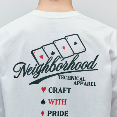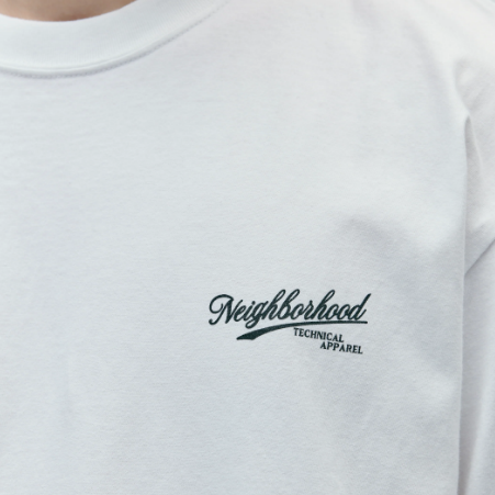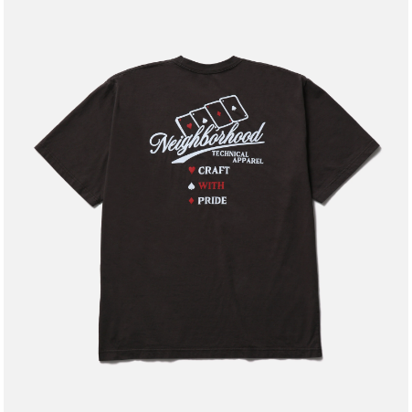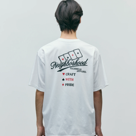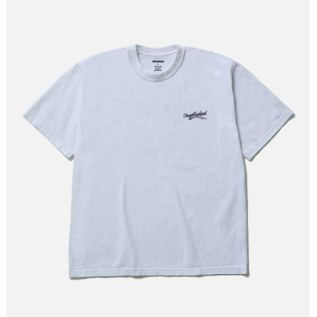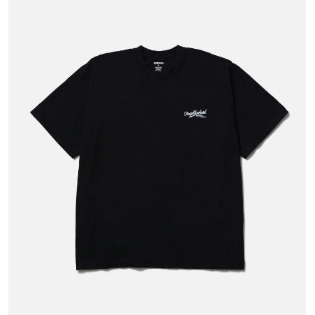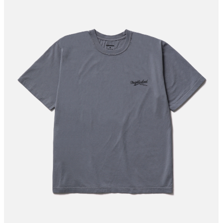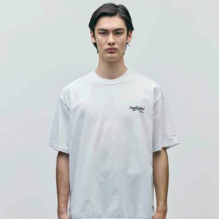 コットン天竺のオリジナルボディーを使用したショートスリーブTシャツ。左胸と背面にグラフィックをプリント。ワンウォッシュ。