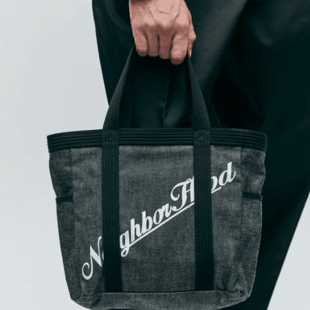 オリジナル の11ozデニム生地を使用したトートバッグ。ハンドルを短く設計したミニサイズのトートバッグ。同系色で統一したコール織りのハンドルを採用。内側にはポケット付き。フロントにロゴをプリント。