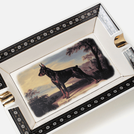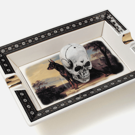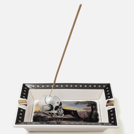 スカルモチーフのインセンスホルダーを置いた、スクエア型インセンストレイ。インセンストレイ側はドーベルマンの絵柄と周りを縁取るようにデザインを施し、裏面にはロゴをプリント。トレイは灰皿やパロサントホルダー等として単体でも使用する事が可能。PACIFIC SHORT INCENSE を5本同封。