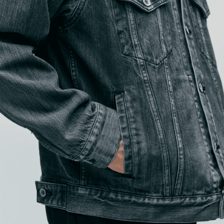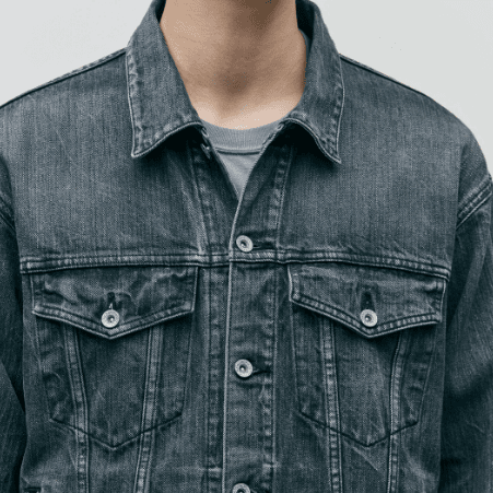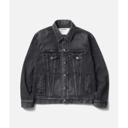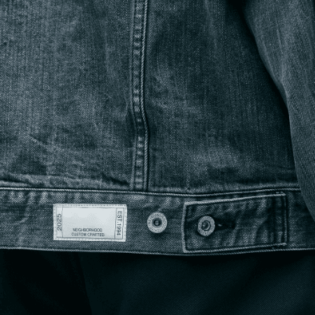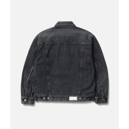 オリジナルの12oz BLACK×BLACKデニムにウォッシュド加工を施した、4thタイプのデニムジャケット。ナチュラルな色落ちやダメージ加工などの複合加工を用いて、リアルなエイジングを表現。オリジナルのタックボタンを採用。サイドシームにピスネーム、カスタムクラフテッドアイテム専用のサイズネームを付属