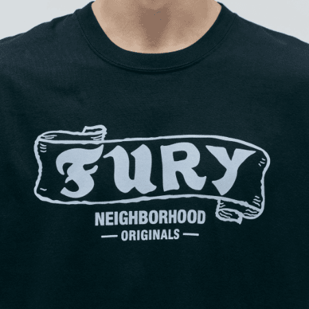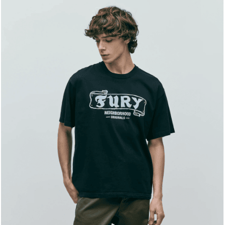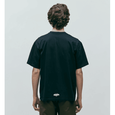 コットン天竺のオリジナルボディーを使用したショートスリーブTシャツ。フロントにグラフィックをフロッキープリント。ワンウォッシュ。