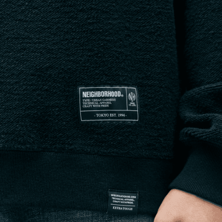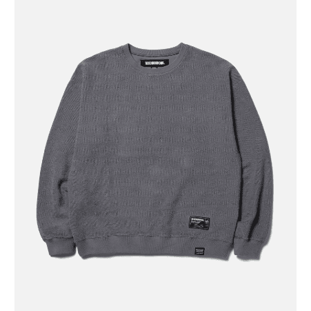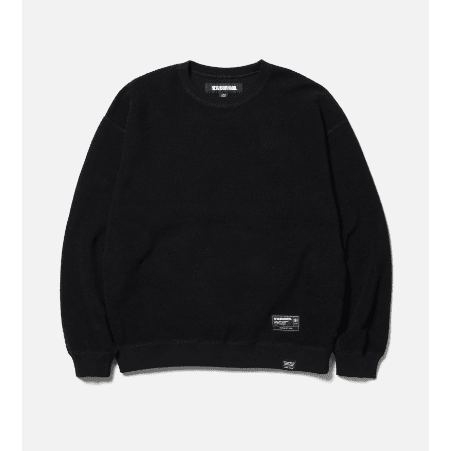 度詰め裏毛生地のパイル面を活かした、リバーシブル仕様のクルーネックプルオーバー。 天竺面にロゴプリントを施し、パイル面にネームタグとピスネームを配置。袖口には挟み込みのネームタグを付属。