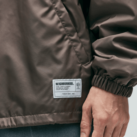 軽さとタフさを備えたナイロンタフタ素材のウィンドブレーカージャケット。両サイドにファスナー付きポケットを配置。裾に調節用のドローコードを内蔵。左胸と背面にロゴをプリント。裏地には吸水速乾性に優れた機能性トリコットを採用し、オリジナルスナップボタン、左裾にネームタグ、サイドシームにピスネームを付属。