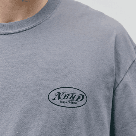 コットン天竺のオリジナルボディーを使用したショートスリーブTシャツ。左胸と背面にグラフィックをプリント。ワンウォッシュ。