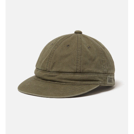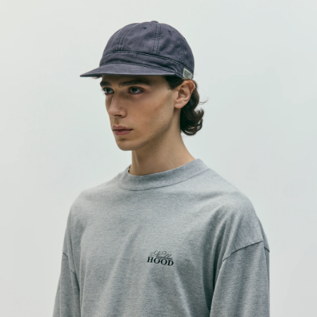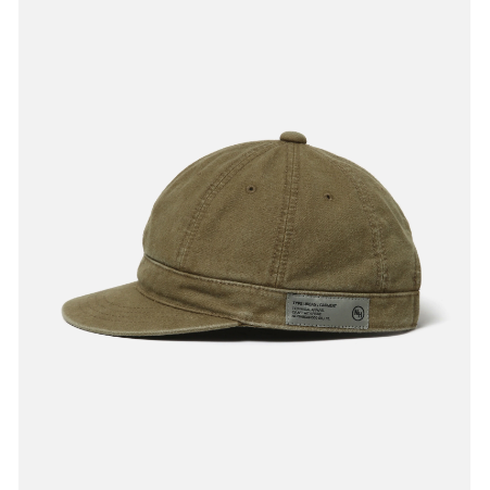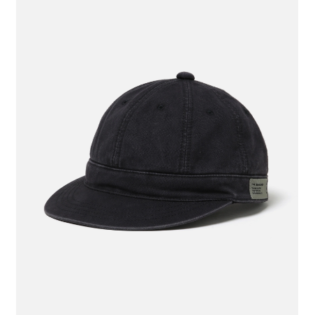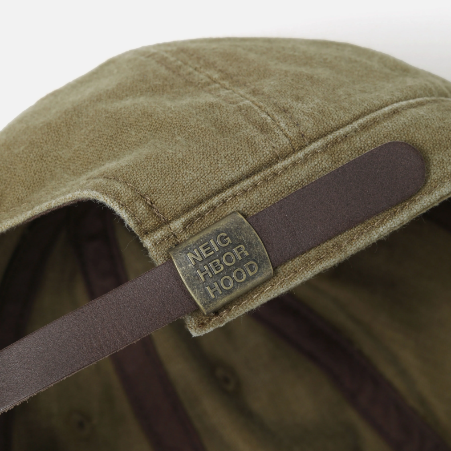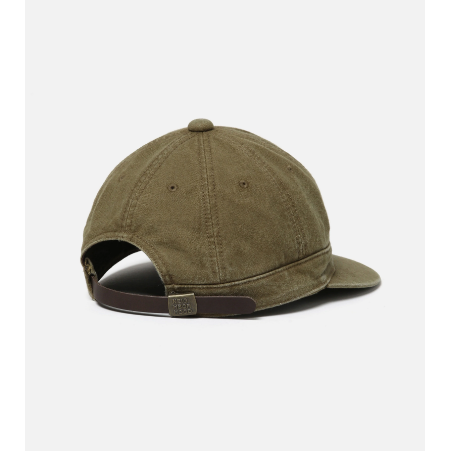 バイオウォッシュ加工を施したベースボールキャップ。レザー製の後部アジャスターにはオリジナルバックルを採用。左サイドにピスネームを付属。