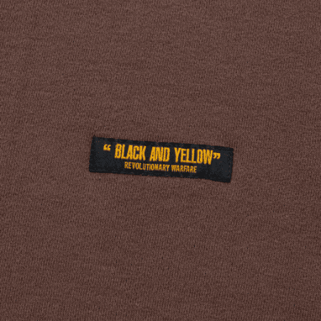 左胸に“BLACK AND YELLOW”の織ネームを叩きつけたデザイン。製品にてワンウォッシュ済み。レギュラーフィットシルエット。。